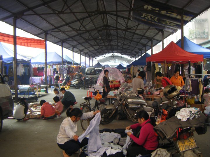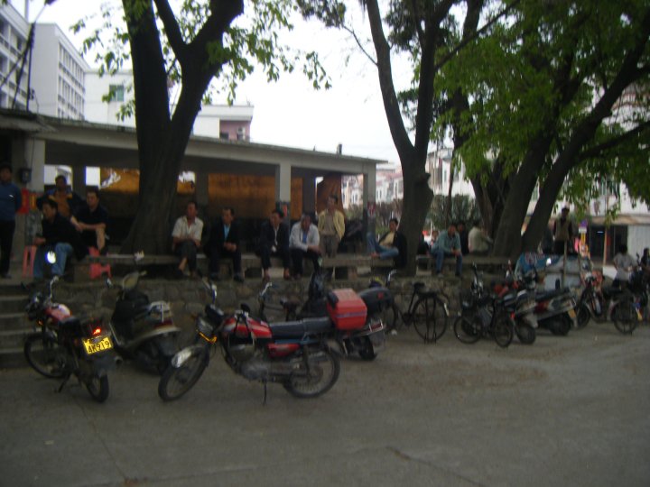 We explored a good deal of the town while touring around with Mr. Mai too. If it wasn’t for the TVs visible from every open doorway in Huangge, and the unceasing lines of mopeds and scooters moving through the tiny, crowded alleyways between houses, you wouldn’t know it was 2010. Everything in Huangge seemed primitive; the houses were old and dusty, no one turned lights on unless absolutely necessary to save money on electricity, the people were wearing traditional Chinese clothing or rags, and we walked past more than one street where they were selling fruits and vegetables on the street literally right next to someone else killing, de-feathering, and slicing up a chicken. I knew for certain at that point, that we weren’t in Hong Kong anymore.