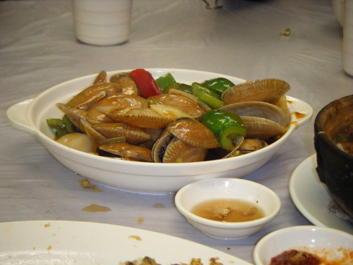 The entire menu was in Chinese, so the four of us just sat and chatted happily while Stephen and Cherry debated what to order and actually did the ordering. The whole meal turned out to be delicious and we had dishes including bok Choy, fried scallops, duck egg steamed clay pot rice, chicken and sausage steamed rice, beef in sauce, and clams with black bean sauce.