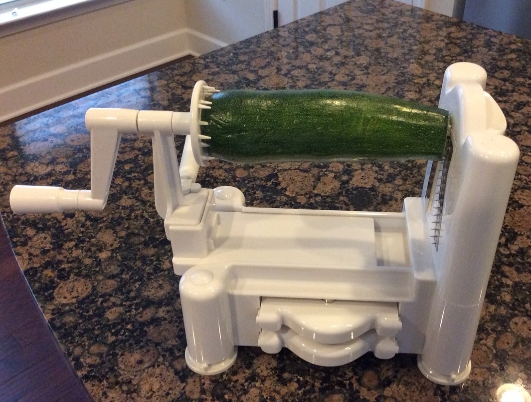 It’s unbelievably simple to turn this zucchini (or any other veggie you can think of) into spaghetti strands with the Paderno.