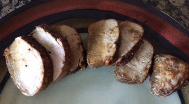 My boyfriend recently got a new townhouse and in his beautiful new home is a beautiful new stove just begging for us to use it. I’ve been happily obliging, but when I discovered the oven is not only conventional but also a convection oven. I’ve never done convection baking or roasting, but after a quick Google search of how to adjust it, I decided to give it a try. My first experiment: convection roasting an espresso rubbed pork tenderloin.
