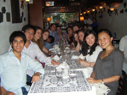 After dinner, a bunch of people headed back to campus early because they had exams coming up on Monday or Tuesday that needed some serious study time (or they were leaving for Singapore in the morning to visit the boyfriend, which was Jen’s case). I chose to stay though, and we walked over to Oyster’s, chatted with other HKUST people (not nearly as many as on Thursday night), went to Beirut next where Abby had a new drink concocted for her in honor of her birthday, and finally everyone ended up at this bar on the 29th floor of the LKF Hotel (yep, there’s a hotel named LKF in LKF) dancing on the packed dance floor. I had worn my highest heels (in honor of Abby), and by the wee hours, my dogs were barking. Luckily, other people were ready to call it a night by then too. We hobbled down to the street, called Taxi Dennis (he drove exchange students around Hong Kong for reduced, flat fees instead of running the meter like normal cabs), and headed home after a pretty successful 21st birthday night. Although it wasn’t as much fun for me as Thursday night (we stood in the street just talking and drinking and not dancing for way too long), as long as Abby had fun, that’s what counted.