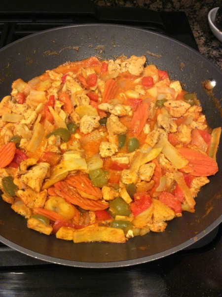 Actually, it was one of the first things he cooked for me right after we started dating, and to this day whenever we make it together I like to think of that. We’d been going out for just about a month when he invited me over to his house for dinner. My birthday was coming up the following weekend, and in honor of it he was going to cook for me (believe me, I know how lucky I am to have a man who can cook. It’s even better that we enjoying doing it together). I didn’t know what to expect, but I knew he had been following the paleo diet for a while before he met me (my love of baking and sugar served to end that diet in pretty short order), and he made me one of his favorite go-to, hearty recipes. Red chicken curry. And I’ll tell you right now, if the man didn’t already have my heart, he would have had it after that dish. It was delicious, paleo or not!