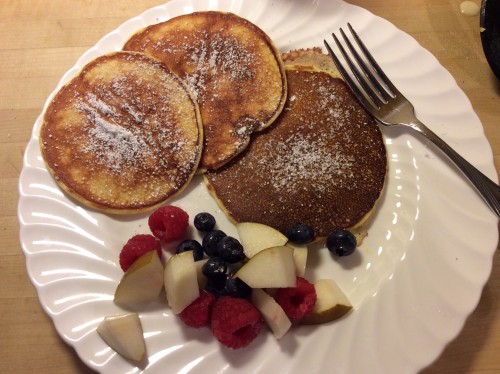 I’ll be honest, I’m not sure how the pancakes came to be dubbed “Danish.” Maybe the powdered sugar sprinkled on top? Maybe the cottage cheese? I don’t know, but it doesn’t really matter. What does matter is the taste (and the ease of making too) and these pancakes rank high on both scales: great taste, one bowl (or blender as it may be) and griddle to make.