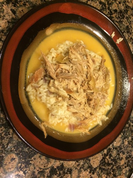 - When pork is done, remove from crock pot, shred with two forks (it should be super tender by now) and replace in the crock pot broth.