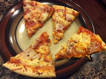 So below is my version of ham and pineapple pizza. If you’re not a mention of ham (or pineapple) or anything else on the pizza, for that matter, feel free to sub in your own ingredients on top of the pizza crust and sauce. This is a great base for just about anything you care to place on top though. Enjoy and let me know your favorite pizza toppings!
