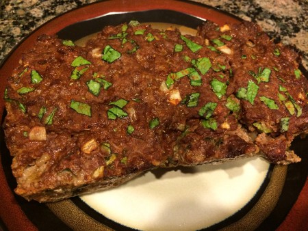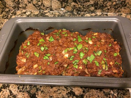 - Place the beef mixture into a 9×5 loaf pan sprayed with nonstick cooking spray, and press down evenly.